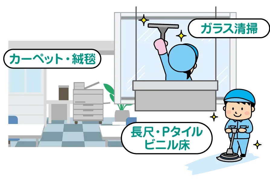 日頃手の行き届かない頑固な汚れを徹底的にクリーニングしませんか。プロのノウハウと技術でピカピカに!!ご予算に応じて、または急な監査・来客対応の為等々…状況に応じて最適なご提案をさせていただきます。